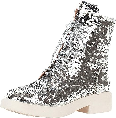 Stay fashionable and on-trend in these Lace Up Glitter Sequin Combat Boots. Featuring eye-catching sequin and glitter details. these boots will let you make a statement without compromising comfort. Lace-up design ensures you can find the perfect fit. Make a statement in style!