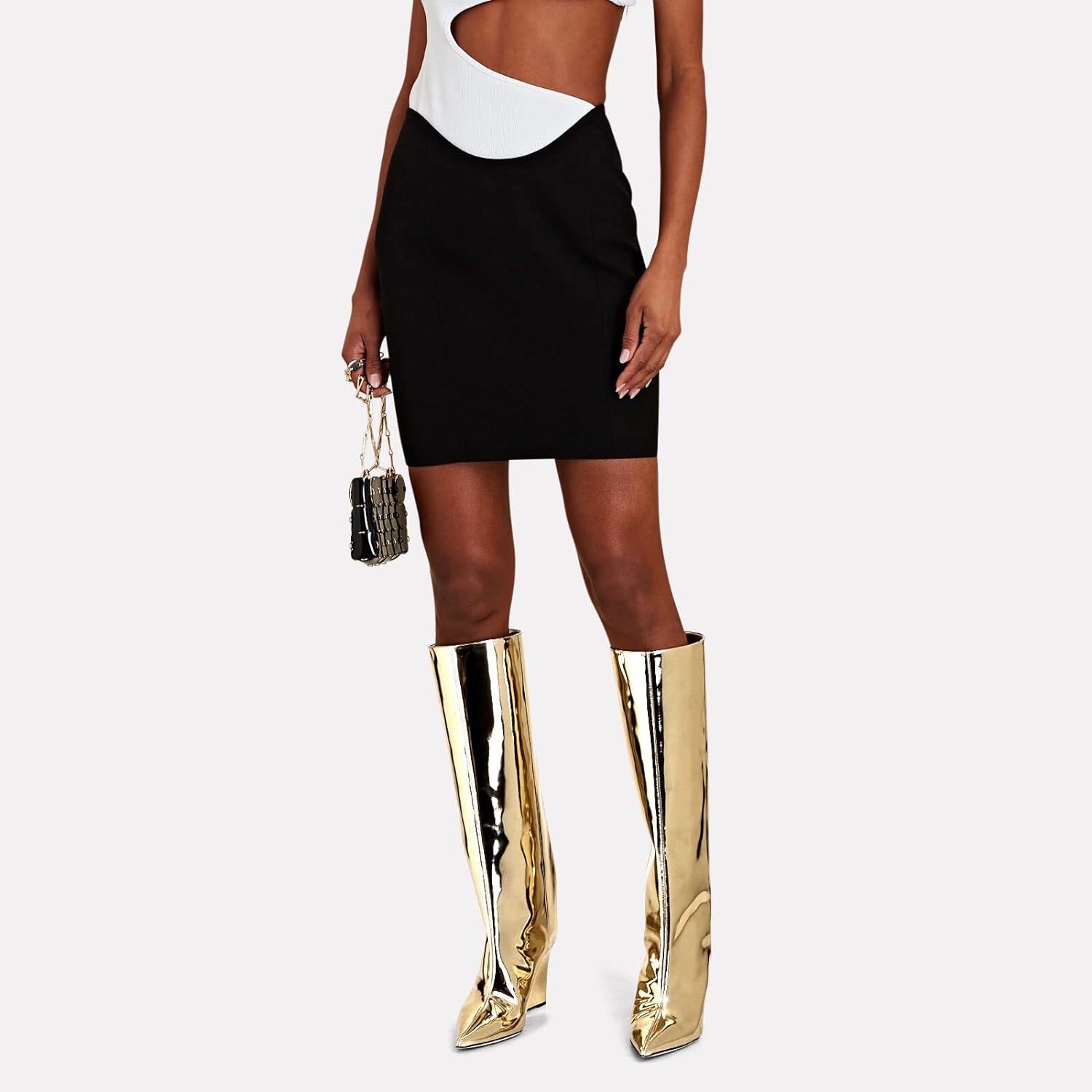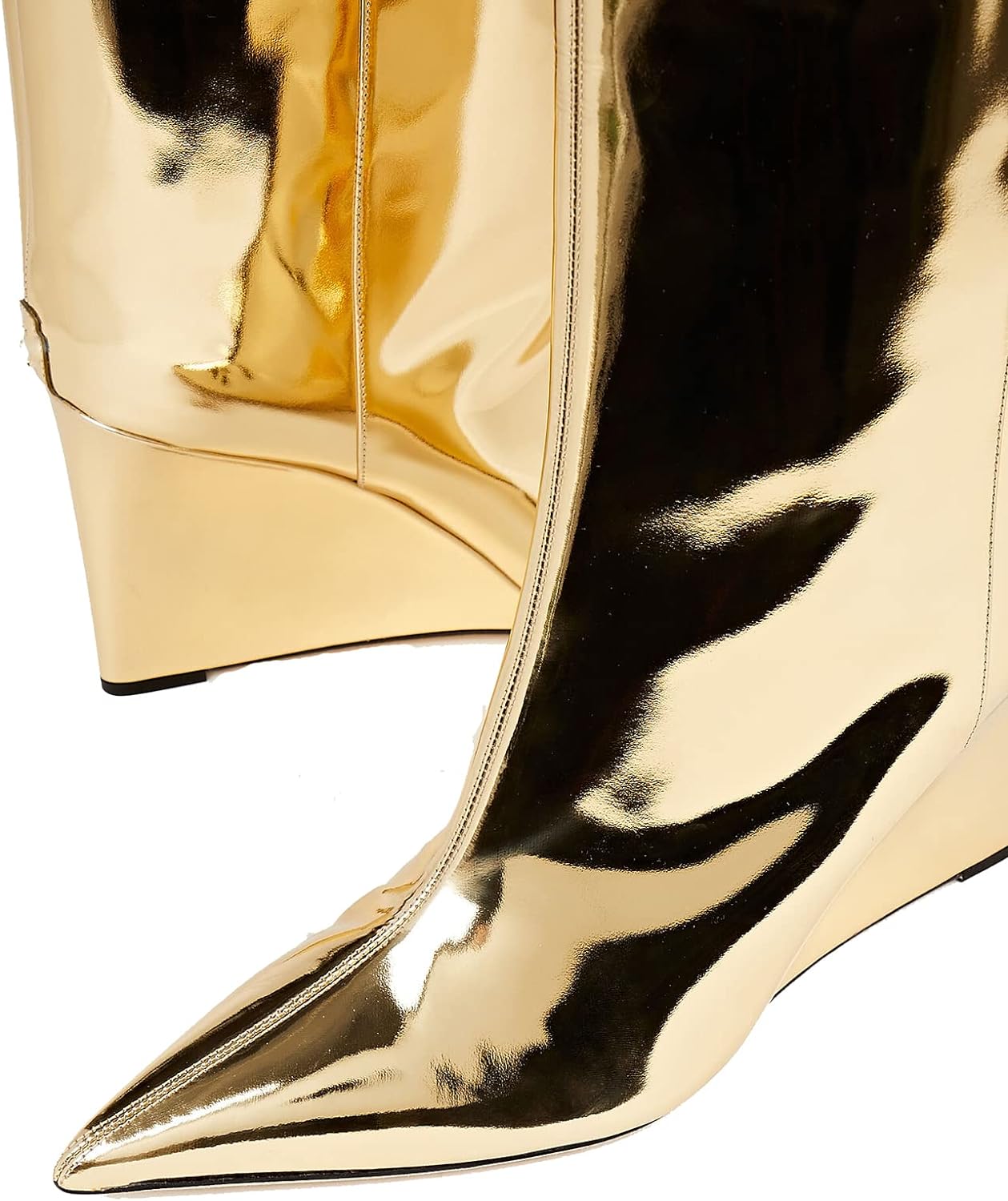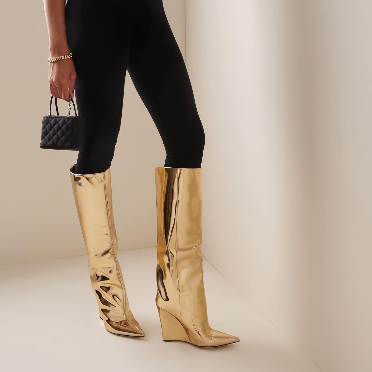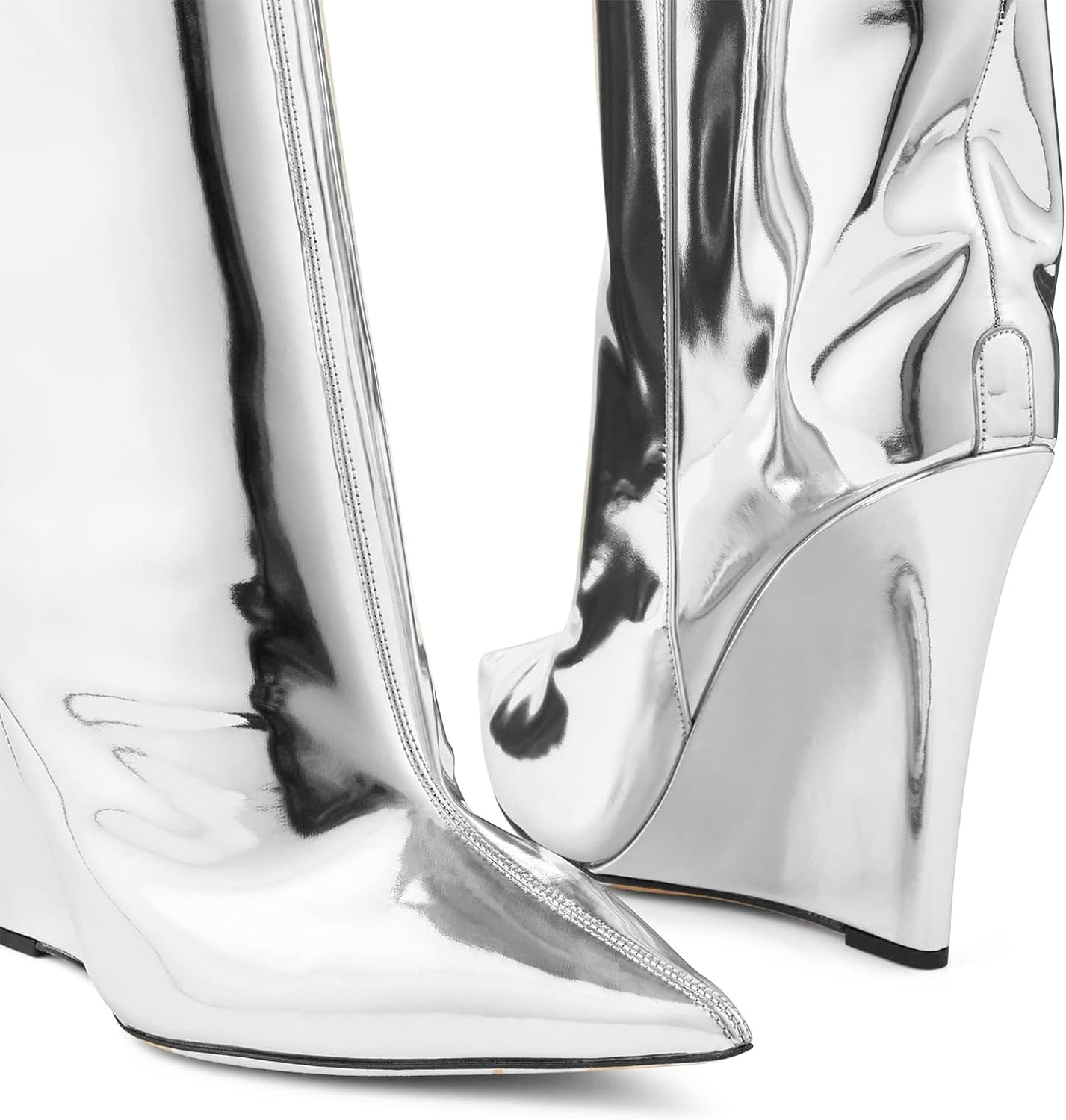 These Metallic Leather Wedge Heel Knee High Boots are crafted with fine metallic leather. providing a stylish look with reliable comfort. The wedge heel elevates this timeless design. creating a polished look you'll love for years. Add a touch of class to any outfit and experience the ultimate in knee-high boots.