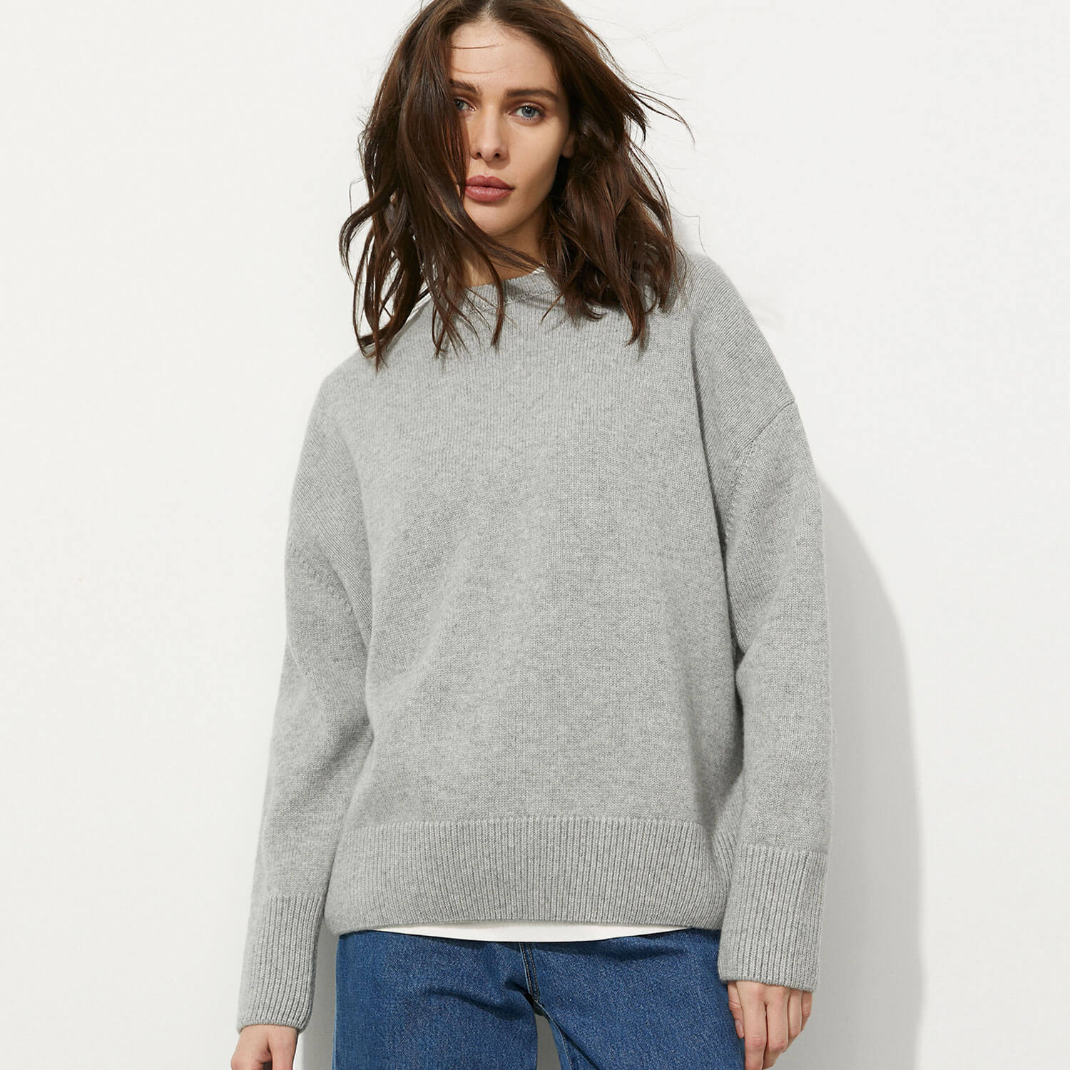 Classic with a versatile design that can be worn over years. this sweater is cut in a minimalist style with the fuss-free look. showcasing a crew neck. long sleeves and dropped shoulders to lend you an oversized unrestricted fit for your comfort. Made with a blend of high-quality viscose material. this jumper feels soft and smoothing to the touch. The ribbed textures on the neckline. cuffs and hem add some stretch for the maximum of your comfort. With so many colors to choose from. the sweater is for sure a no-brain go-to style that you can throw it on every bottoms in your wardrobe.