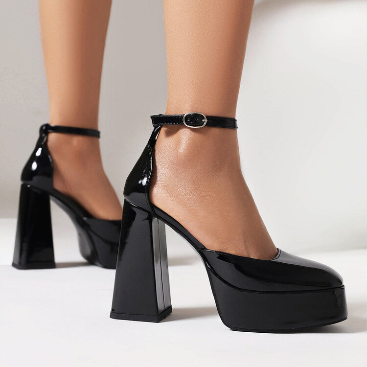 These chunky-heel shoes feature an ankle strap for added stability and comfort. With their elegant and minimalistic design. the Malin Tassou Broadway Platform Heels not only enhance your outfit but also provide the perfect balance of style and posture for any occasion.