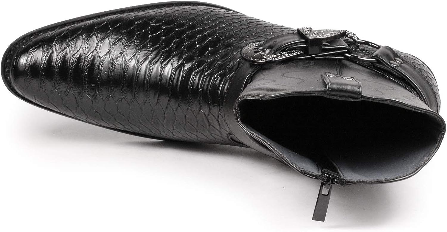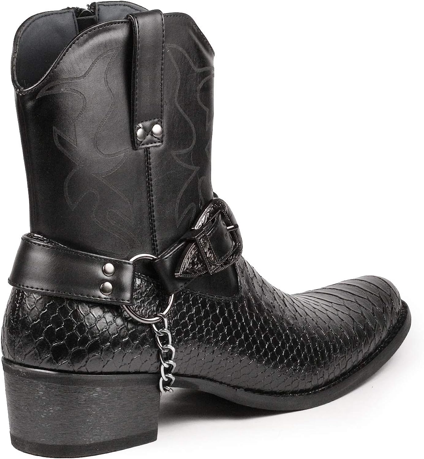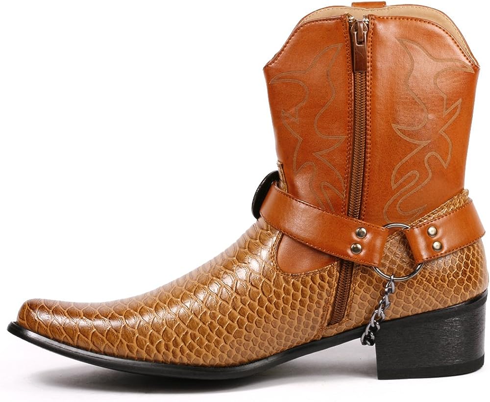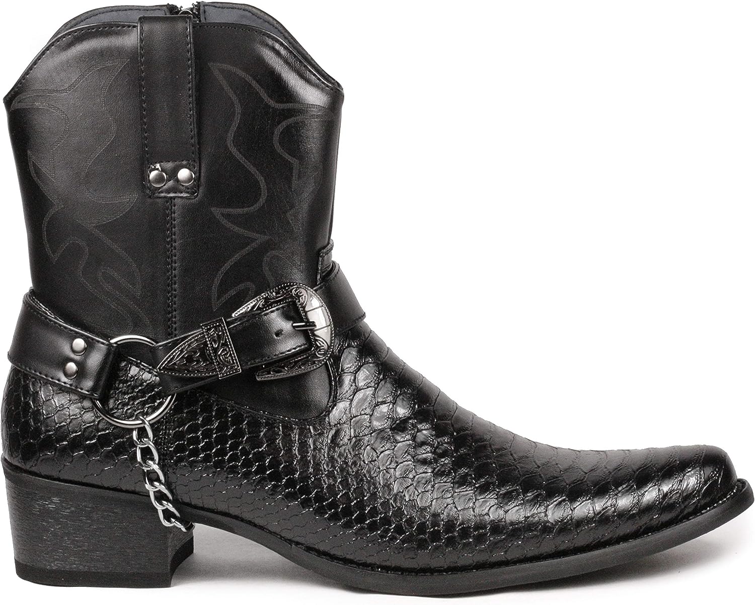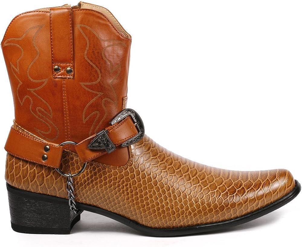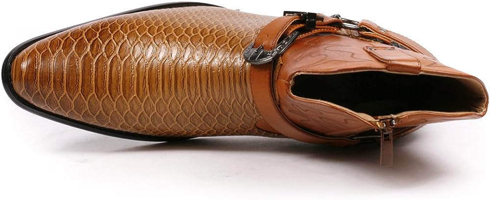 This pair of men's cowboy boots offers a unique faux crocodile-embossed texture and buckle chair detailing. Crafted from premium materials. these boots provide both a stylish look and comfort for all-day wear.