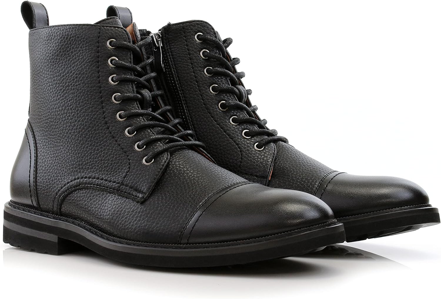 Men's Vegan Leather Blue/Brown Lace Up Ankle Dress Boots offer superior comfort and style. Crafted from ethically-sourced vegan leather. they are finished with a stylish lace-up design. a strong sole. and a cushioned insole for all-day comfort. Perfect for casual and formal outings.