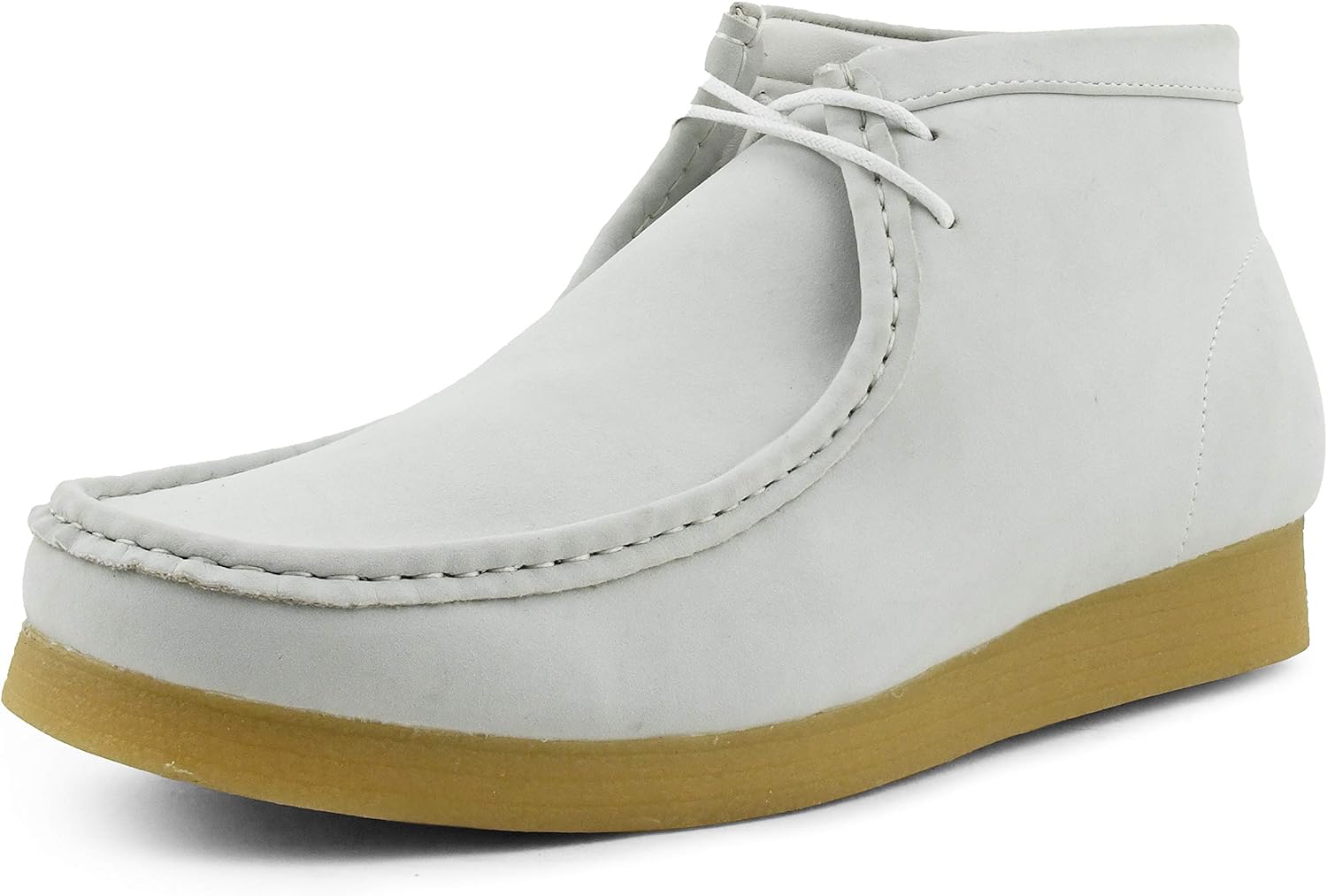 • Manmade suede and mesh material throughout. with a lace up design. and crepe like rubber sole. You're sure to stand out when you wear these classic. handsome. and modern chukka boots.
