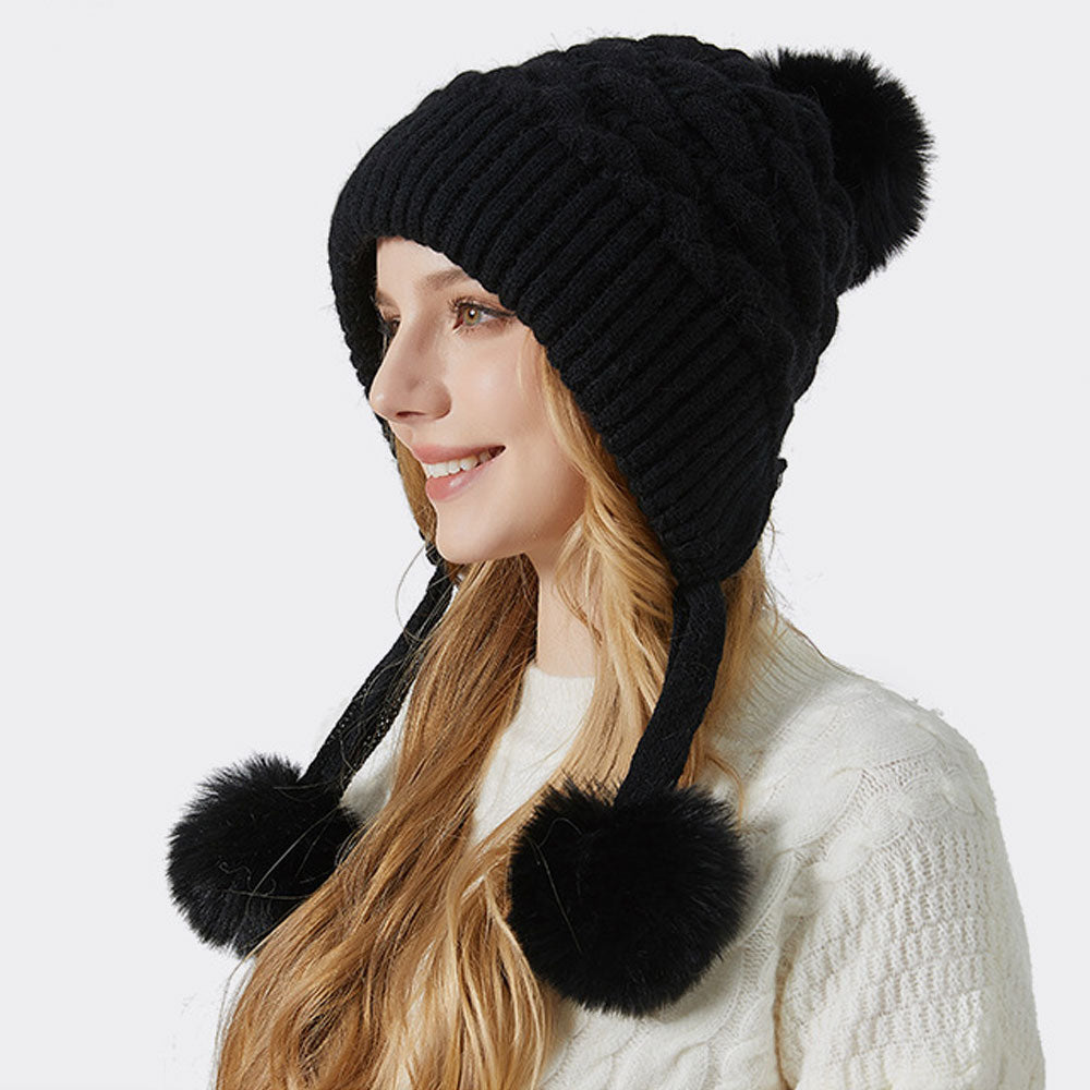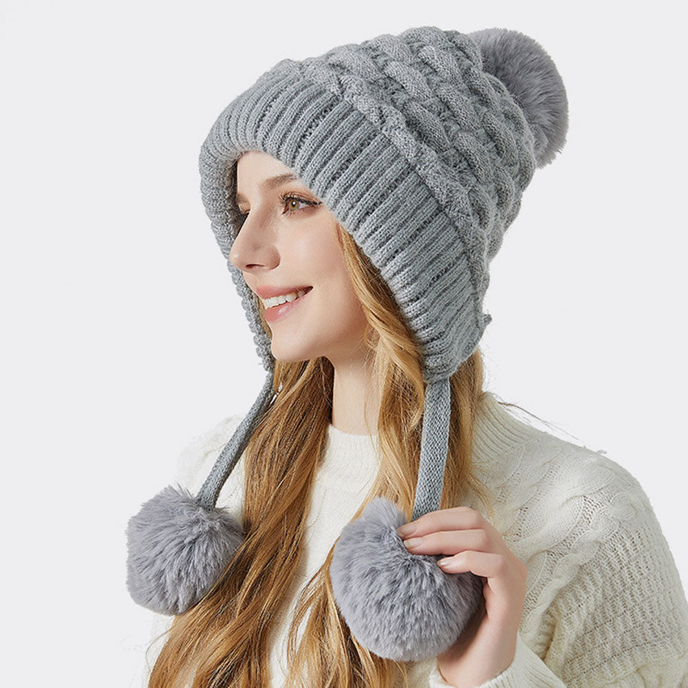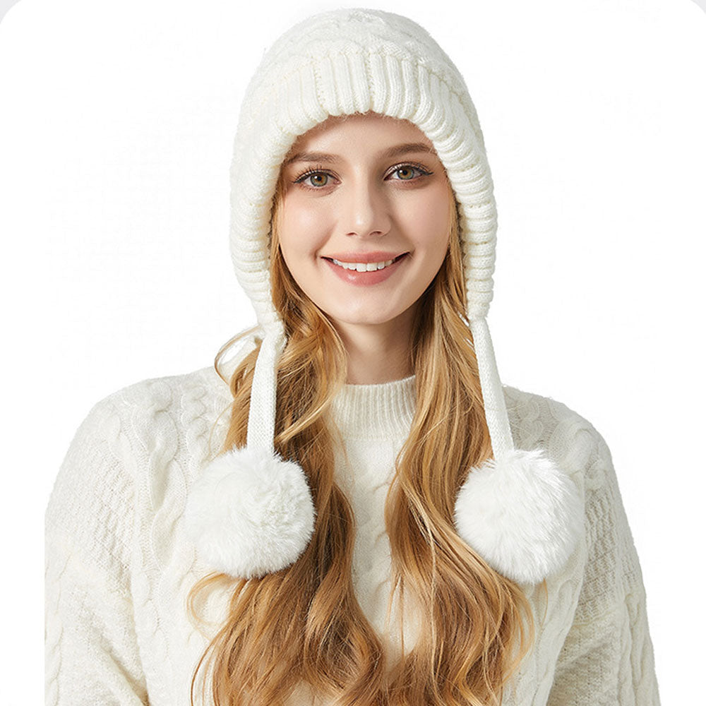 Top off your holiday look with our endearing Christmas knit hat - 'tis the season to be cozy! With charming pom poms and earflaps. this winter knit hat combines classic design with modern comfort. But what truly sets it apart is the plush fleece lining. designed to keep you exceptionally warm and comfortable on the coldest of winter days. Embrace the holiday season with a headwear piece that not only showcases your love for Christmas but also keeps you snug and stylish. Welcome the season with open arms. and make this beanie your go-to choice for winter comfort and style.