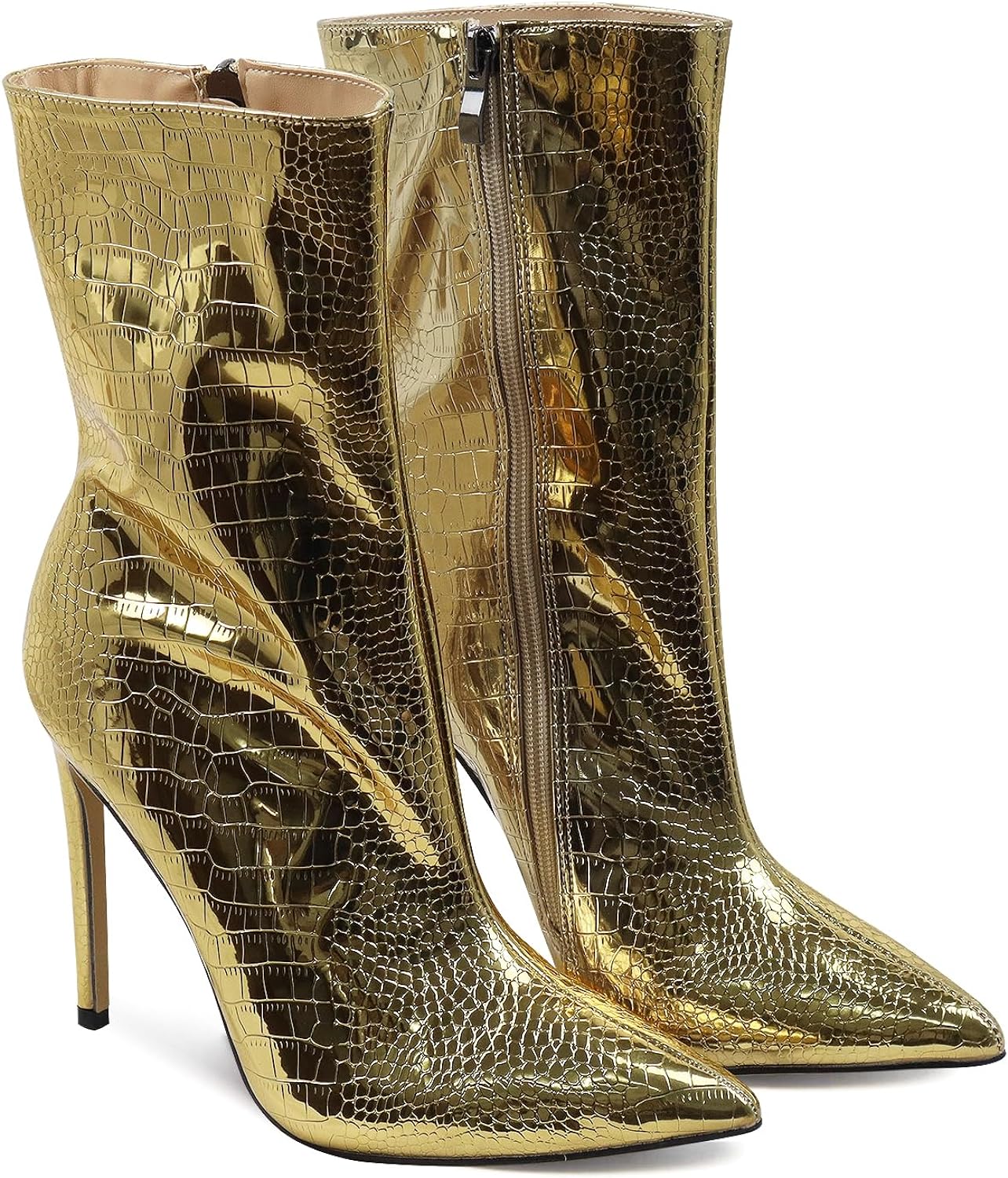 These stylish Metallic Gold Stone Pattern Leather Ankle Boots offer a sleek. modern look. Crafted out of durable leather. they feature a pattern of gold stones on the upper for a unique touch of elegance. These boots provide superior traction and comfort. making them perfect for long-term wear.