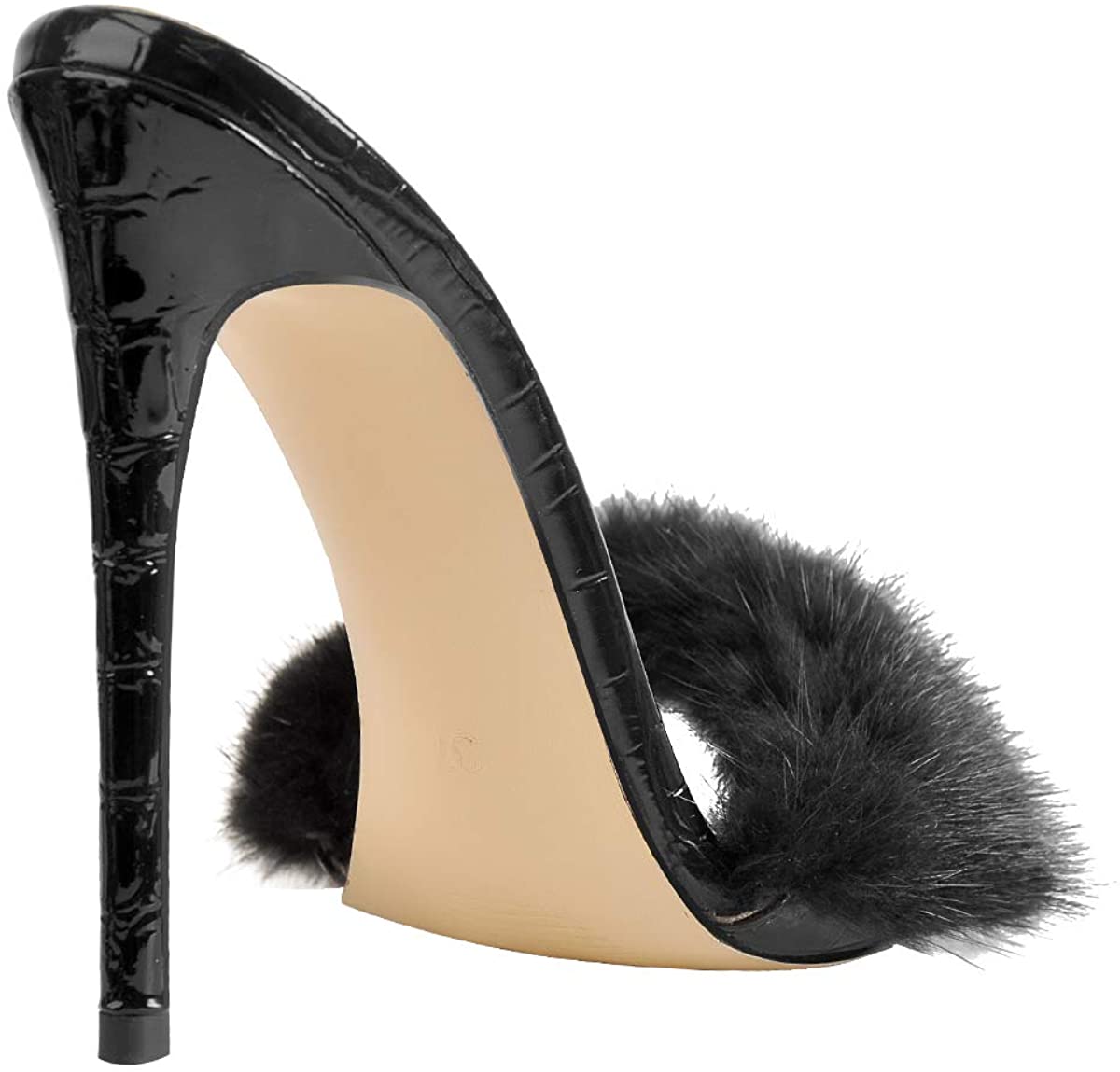 Look sleek and fashionable this summer with these Faux Fur Black Pointed Toe High Heel Mule Sandals. The tapered toe design provides an edgy vibe while the wedge heel ensures stability and comfort. Make a statement with these stylish sandals.