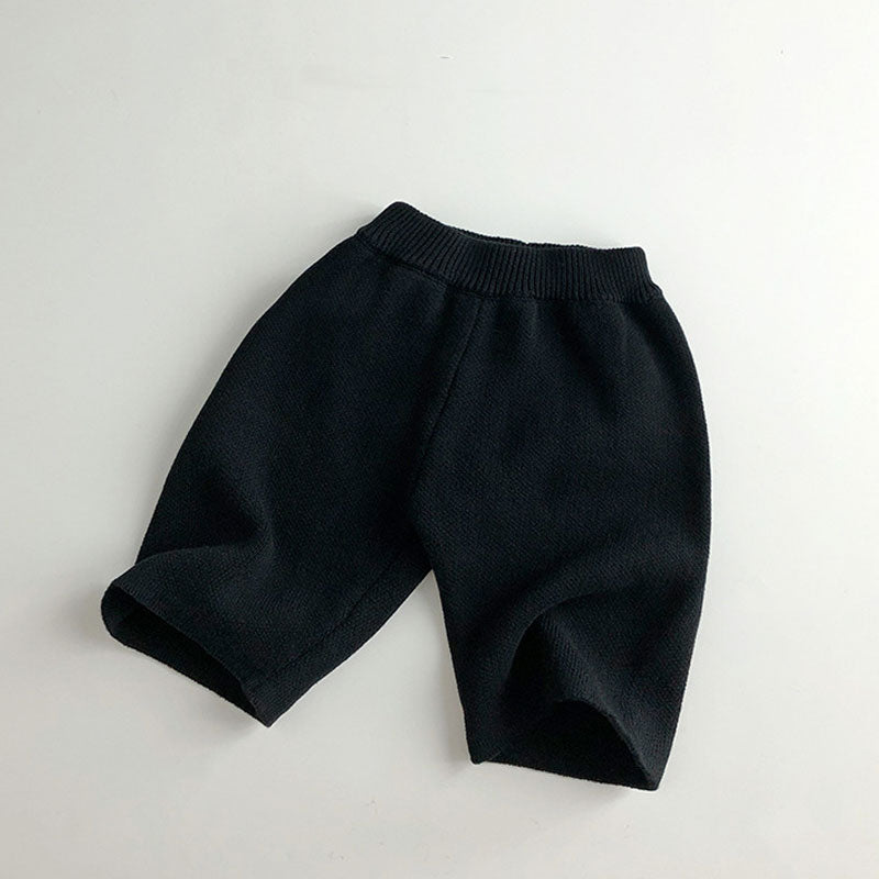 Hardwearing. cozy and soft against the skin. you and your little boys will love this knitted shorts. Crafted with recycled knit yarns for adding stretch and durability. the knit bottom is cut in a straight leg silhouette to create a stylish Bermuda shorts style.The elastic waist offers a perfectly snug fit for most of the kid's body shapes. A regular fit is finished with a minimalist design. perfect for fuss-free everyday wear. The kids version is rendered in a versatile black shade. offering endless style pairings. Style it with the matching sleeveless cardigan for an easy school appropriate outfit.