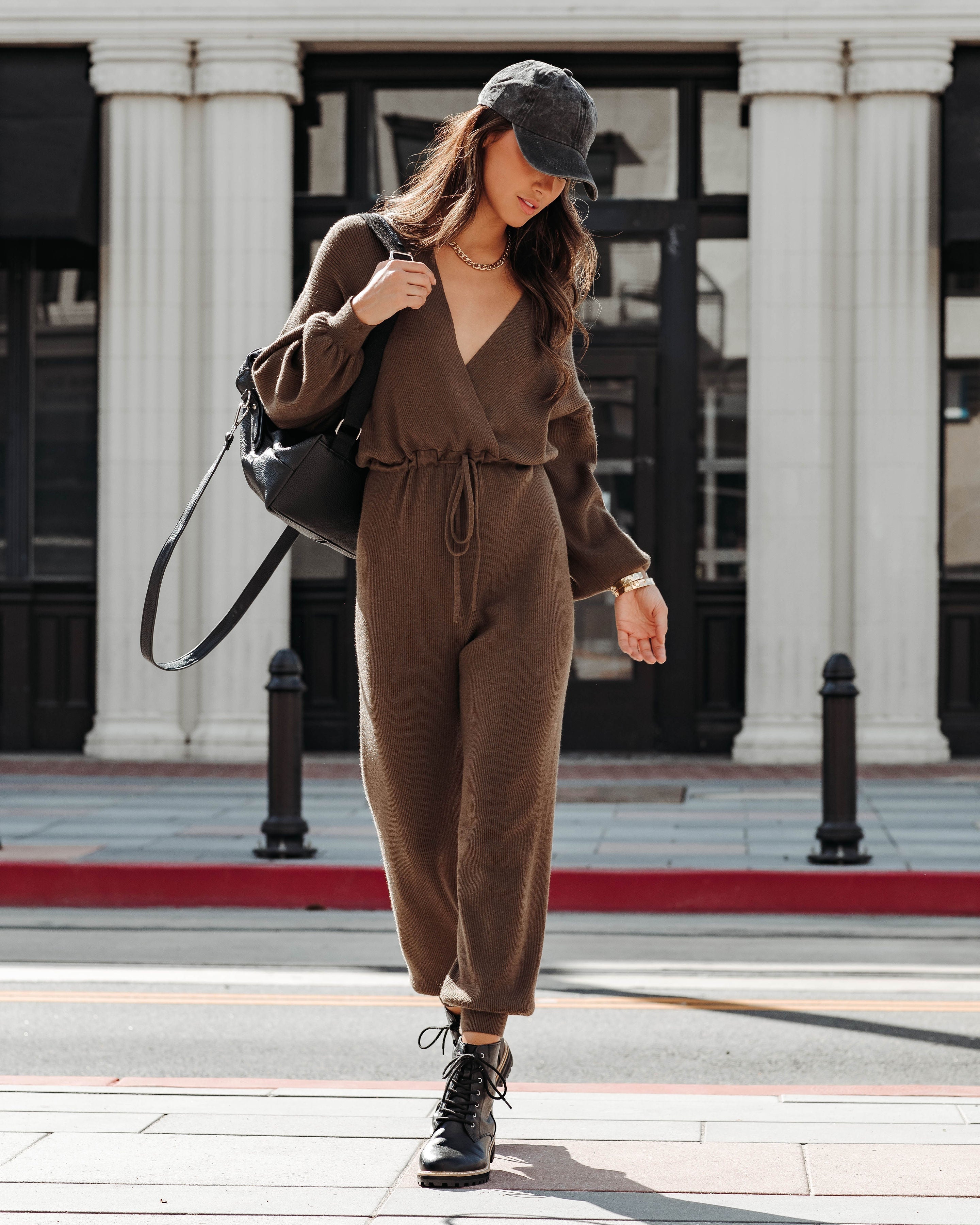 Elevate your comfy vibe in the Monica Ribbed V-Neck Jumpsuit in olive that features a draped neckline.