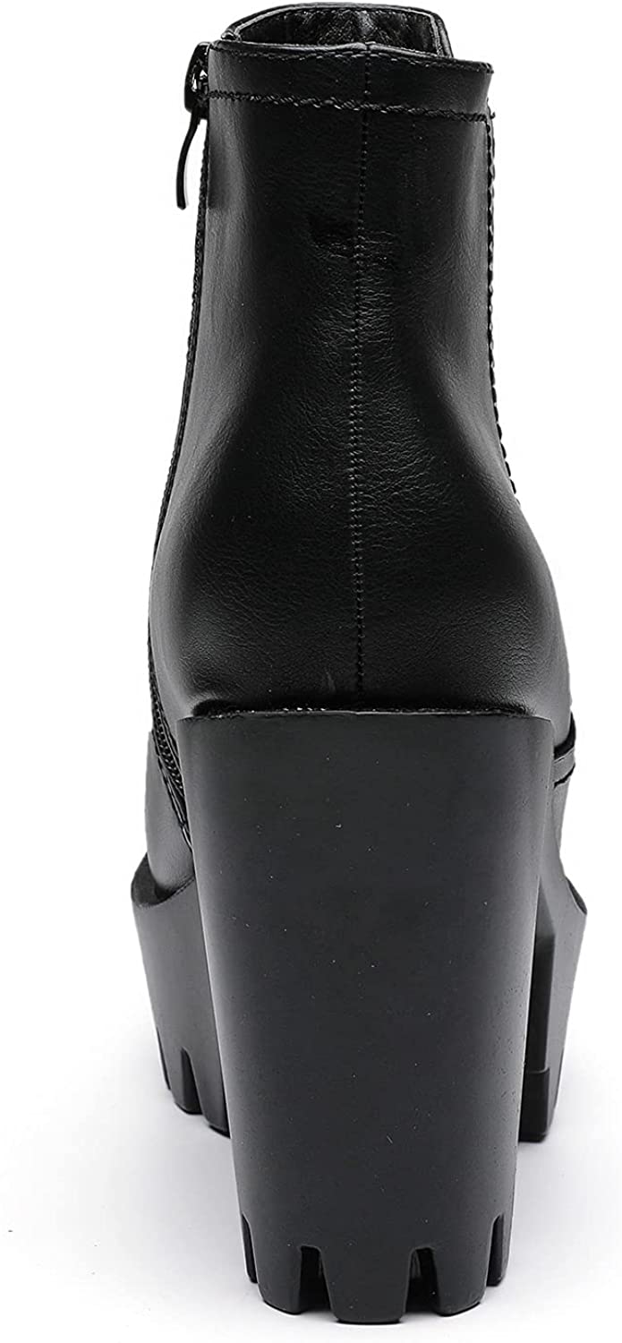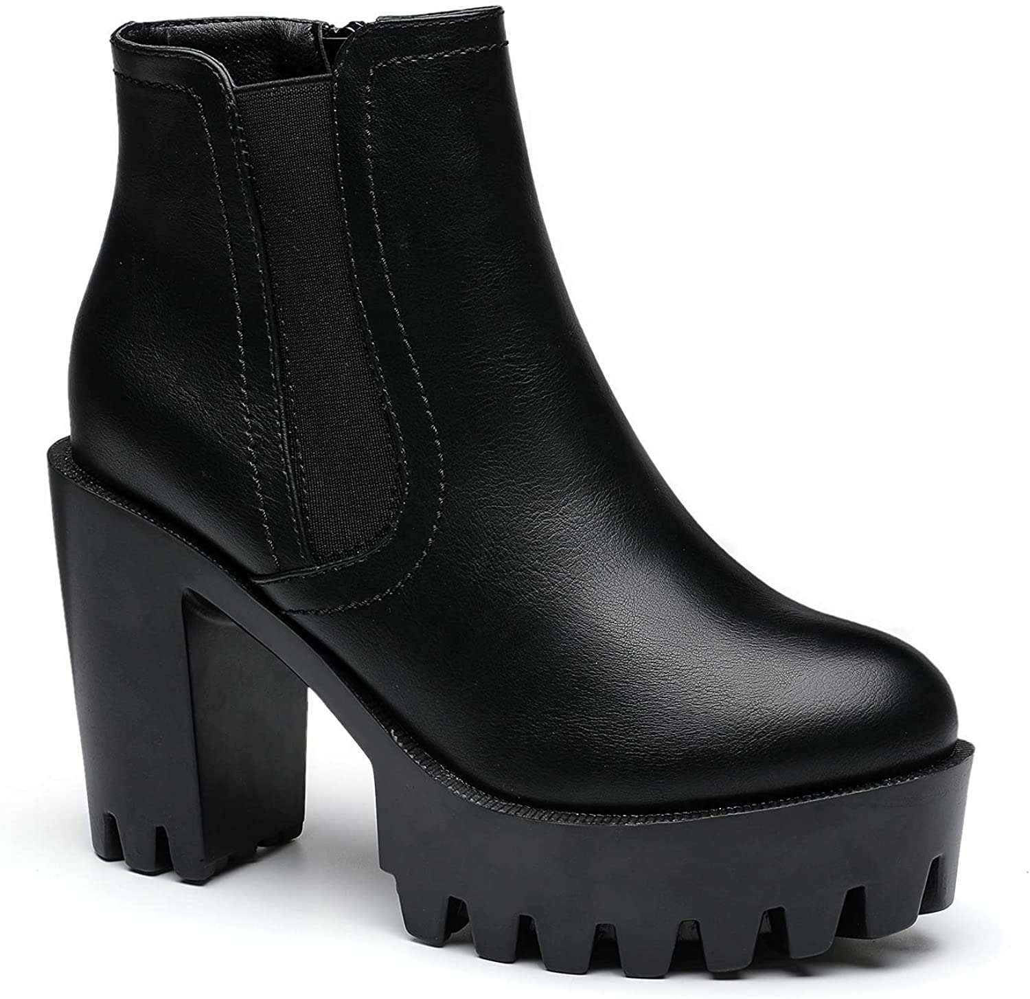 Nellies Black Chunky Heel Ankle Cut Platform Booties
