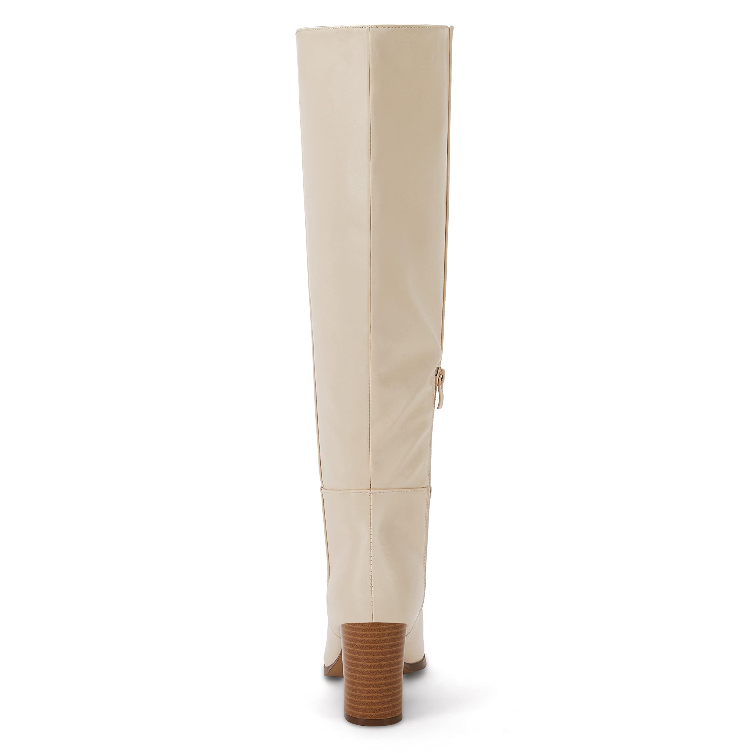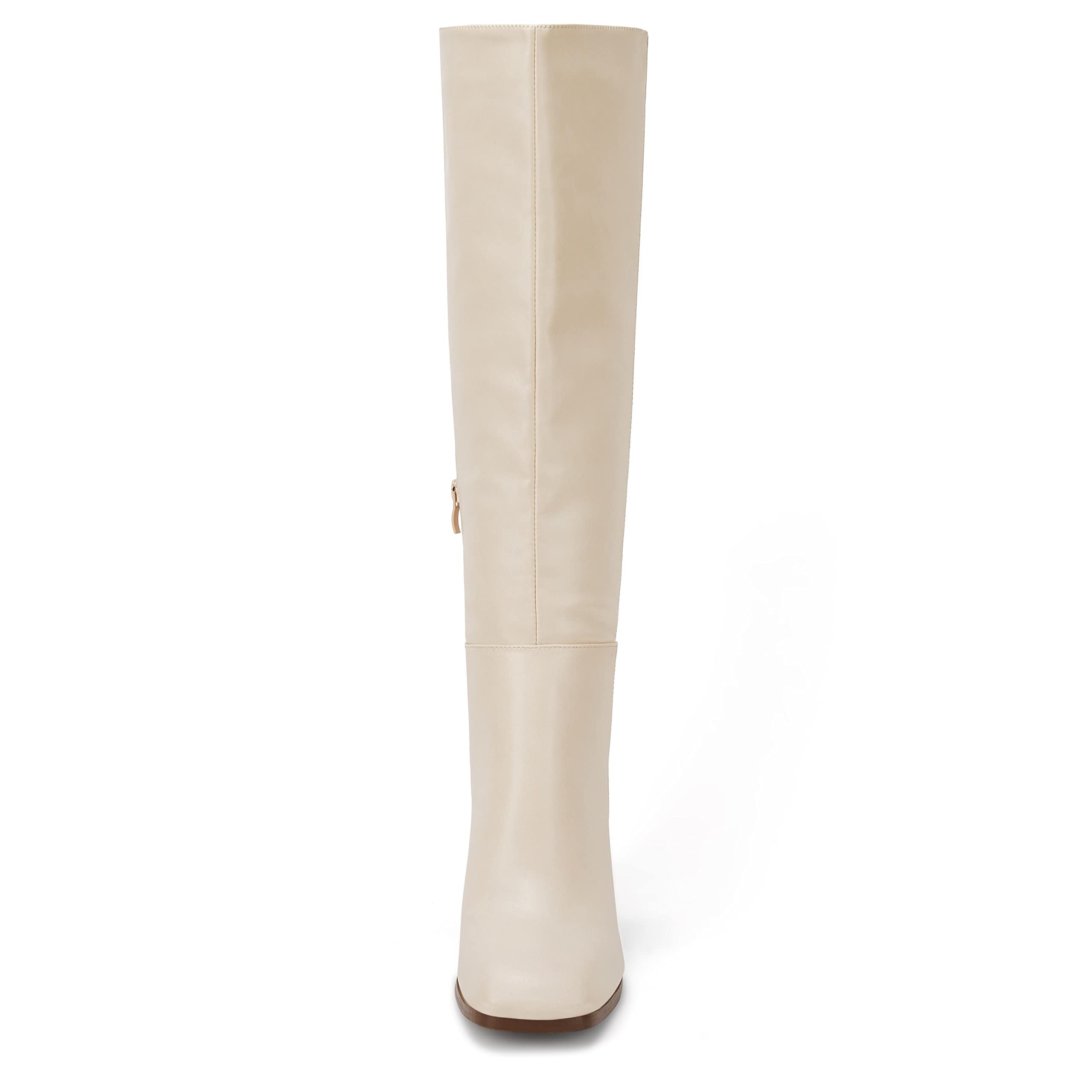 Nude Faux Leather Fashionable Chunky Block Knee High Boots