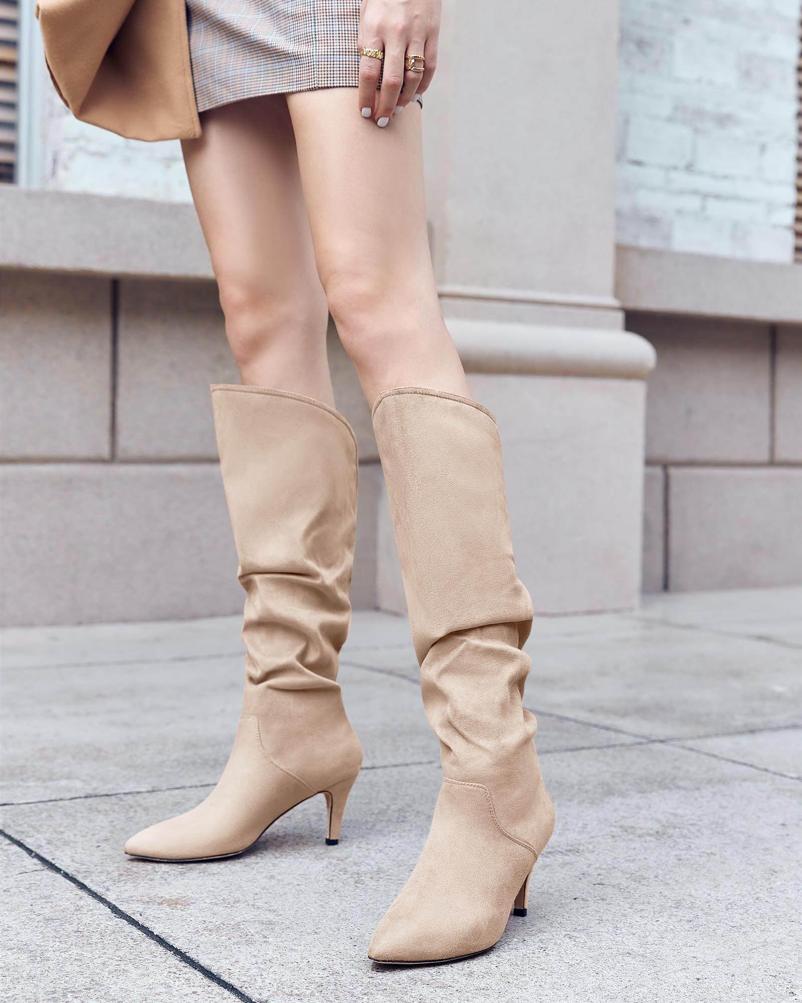 Slouchy Kitten Heel Wide Calf Boots are perfect for a stylish yet comfortable look. These boots feature a slouchy design offering generous calf room. as well as a kitten heel for an on-trend look. Ideal for adding a touch of elegance to any outfit.