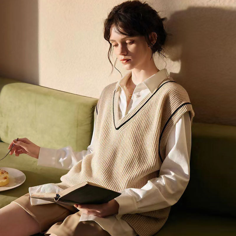 With the preppy and polished look. this tennis sweater vest will be on your rotation in the transitional wardrobe. Constructed from soft wool-blend material for a cozy feel. it employs a textured ribbed-knit technique with structured ribbed finishes for a modern fitted look. Inspired by the varsity style. it has contrasting trims along the deep 7" V neck and armholes. The relaxed silhouette makes it a perfect option for layering over a shirt or basic top. Go for an effortless chic fashion by wearing it with a basic shirt and add wide-leg pants.