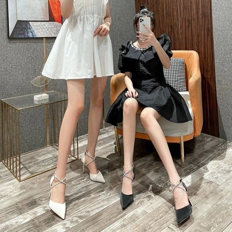 IFOMT - Rhinestone New Women High Heels Fashion Buckle Wedding Women's Boots Pointed Stiletto Heel Fashion T-Heel Sandals