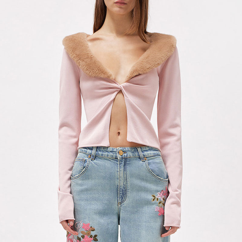 Get set for a wardrobe revamp with our sassy knit jacket! It's not just an outfit addition; it's a nostalgic blast here to redefine style. Picture a plunge neck rocking a contrast color faux fur collar �it's a retro party in clothing form. channeling those iconic vibes with a modern twist. Hold onto your style seats because below that collar lies a twist of sassy sophistication! Featuring a front split and full long sleeves. this knit top screams 90s dream. Whether you're clicking 'Add to Cart' or layering it up. get ready to strut like it's 1999 �your quirky-cool companion for a 90s revival is here!