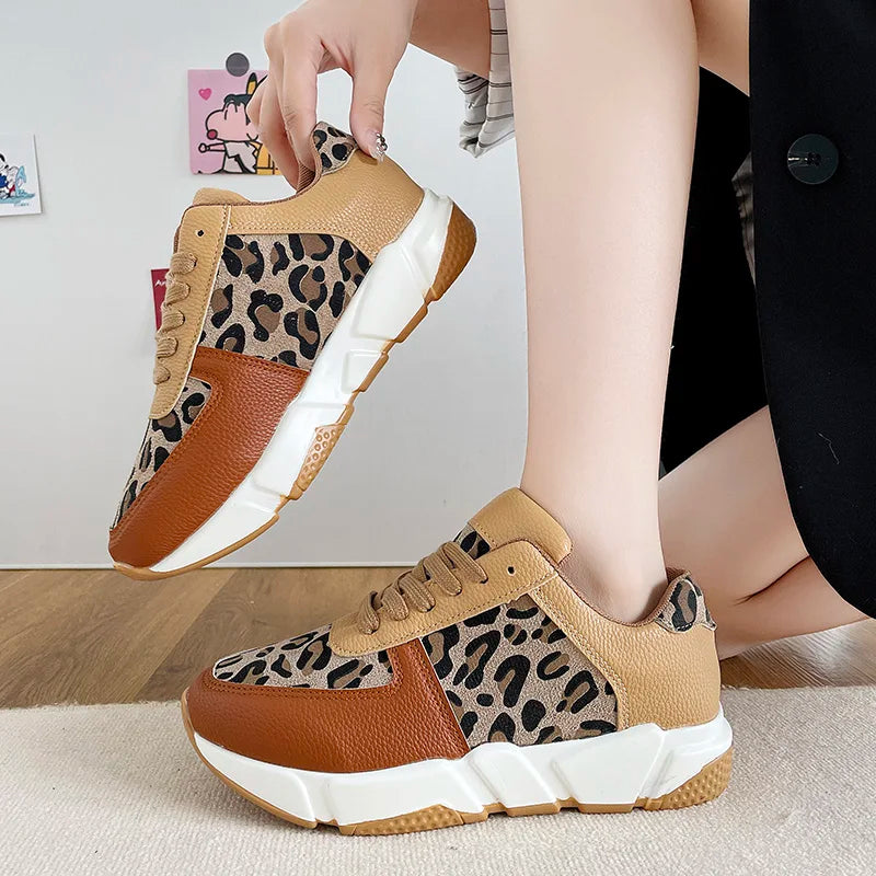Step into a world where fashion meets function with these captivating sneakers. Featuring advanced arch support. they are designed to alleviate pressure on your feet. reducing discomfort in the heels and lower back. The bold leopard print adds a touch of wild sophistication. making these sneakers the perfect blend of style and comfort.