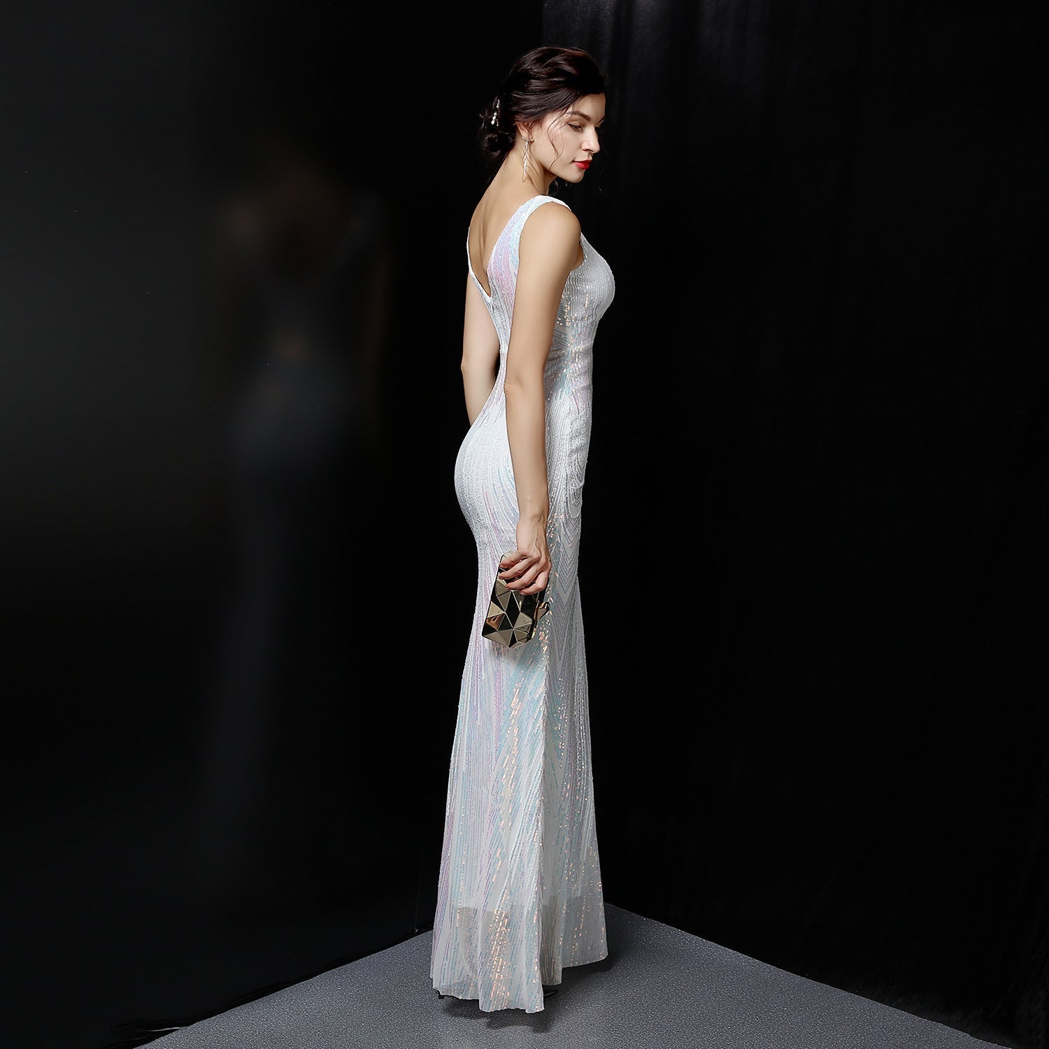 Aren't you rare? This amazing colorful sequined Ava formal dress is a true fantasy! She features a deep V-neck. Exposed back zip closure. And colorful sequins all over the rainbow. The slinky silhouette complements her flared. floor-length skirt.