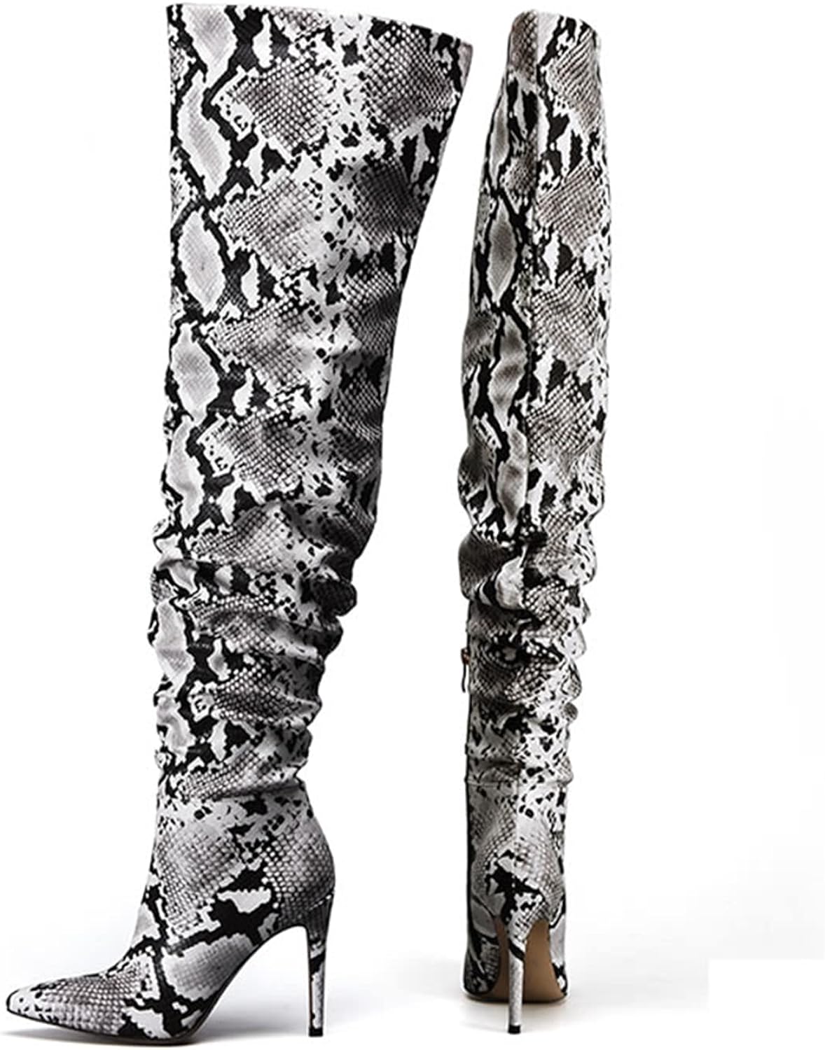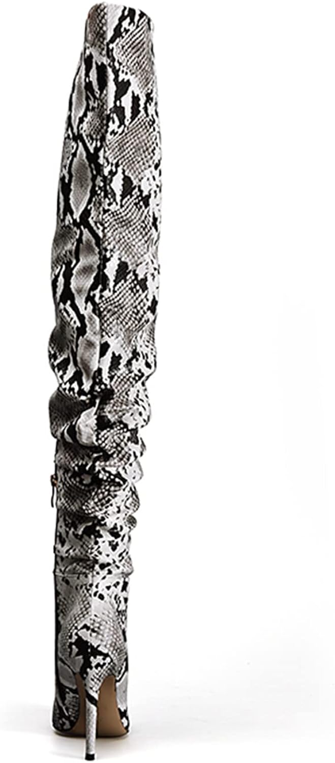 Look no further for designer style at an affordable price. These snakeskin printed stiletto over the knee boots feature stunning printed designs and the perfect heel height for long-lasting comfort. Elevate your style with these stylish boots.