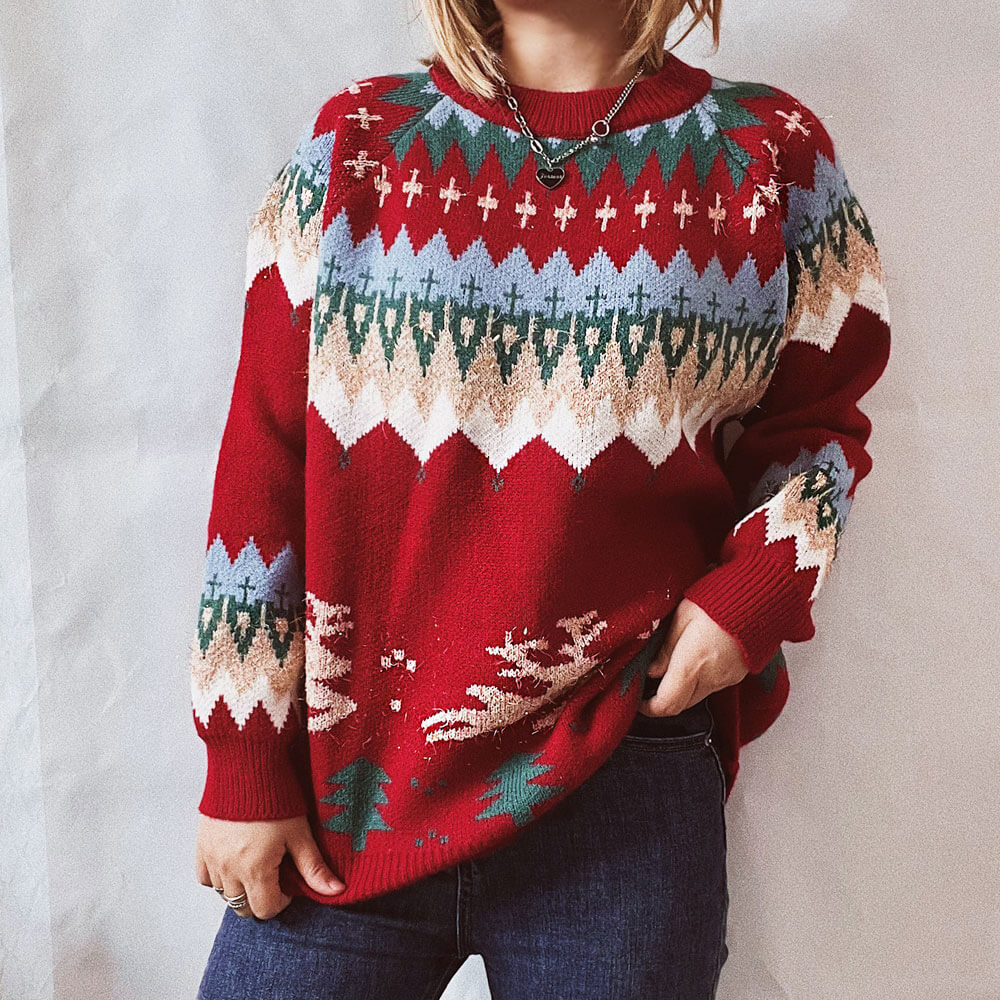 The fluffy lurex thread detail on this statement Christmas sweater makes it festive enough to wear with skirts to the holiday party and with jeans all season long. Intarsia-knitted from reindeers. Xmas trees. snowflake and geometric patterns with a metallic touch. this warm winter knitwear is the new closet essential. Made of thick acrylic and cotton-blend. this holiday knit sweater has a roomy fit with a ribbed crew neck. raglan long sleeves with ribbed cuffs. and a slightly long length. Wear yours with both denim and tailoring.