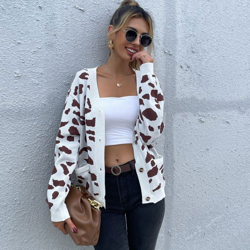 Every season needs cheetah fashion! This cardigan is crafted from a blend of acrylic and polyester with the leopard spots in the gorgeous khaki hue. Trimmed with ribbed finish alongside neck. cuffs and hem. the knit cardigan is designed with a button-up closure. V neck and two patch pockets. The relaxed silhouette is defined by the drop shoulder. lending you a comfortable. non-restrictive fit. It's a great option to wear transcending the seasons. Layer it over your favorite basic piece and add pants or skirts. The chic pattern is sure to earn you some styling points.