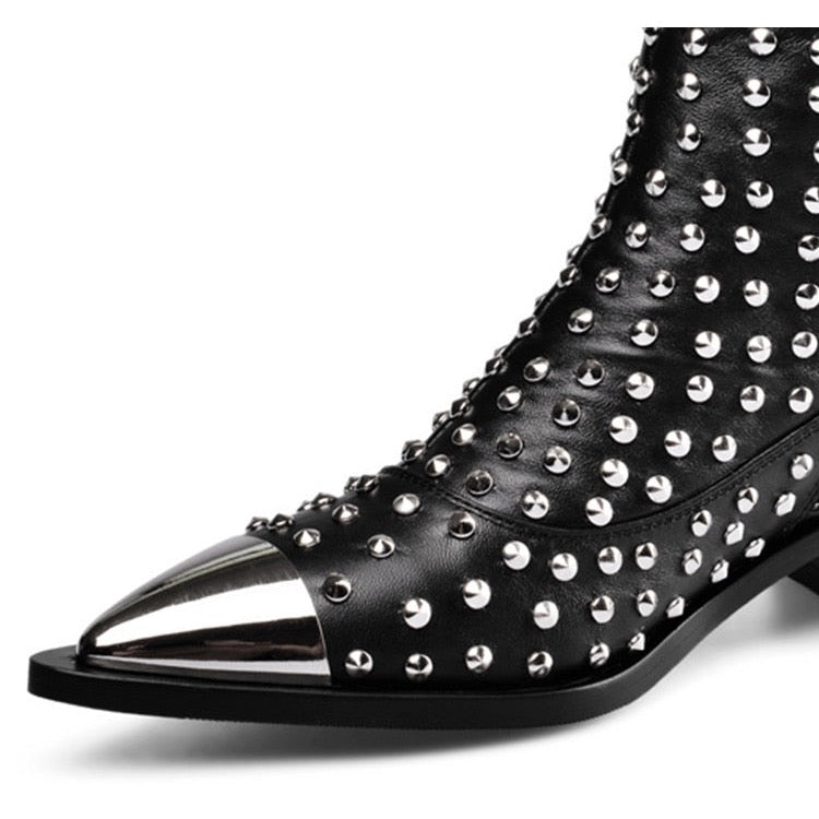 Wythe Pointed Toe Rivets Boots - 2 Colors. Super stylish ankle boots with full of cool rivets. Rock your outfit or street with awesome boots. Handmade with Genuine leather.