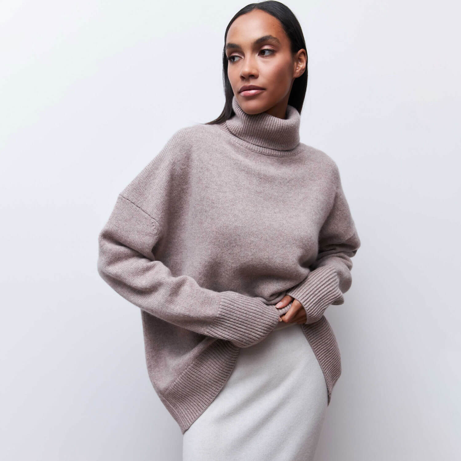 Get cuddled up in this sweater and stay toasty warm through the whole winter season. Designed in a fuss-free minimalist fashion. this jumper comes in a monochrome shade with a wide range of color options. Exquisitely Crafted with a blend of polyester. acrylic and polyamide. this jumper is in a pullover oversized loose fitting style. with the relaxed drop shoulder. long sleeves and a cozy turtleneck to keep you warm from the cold. The wide ribbed trims on the neckline. cuffs and hemline add a little texture and stretch to the sweater. which contributes to its elongation and comfort. Wear it solo or layer it under your trench coat. this mid-weight sweater can be worn with everything which is super versatile. whether a skirt or pants. It knows how to make you look luxurious yet in a affordable price.