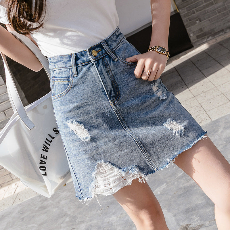 Refresh your denim mini skirt collection in the Wilbert Crisscross Distressed Denim Mini Skirt in light wash that features an asymmetrical waistband.