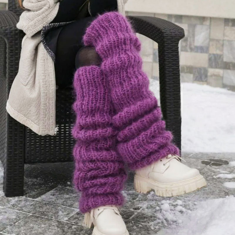 An abundance of cool hues offers the perfect refuge this winter. Super soft and comfortable touches in the chunky knitted construction from the mohair-like acrylic yarn. the warmers are measured 23 inches from end to end. The slouchy silhouette is ideal for full-leg coverage and layered leg scrunches which exudes a throwback look. You can go for an ultra-preppy look by styling them with an argyle sweater vest. pleated mini skirt and loafers. or add a leisurely mature impression by pairing them with an oversized sweater and sneakers.